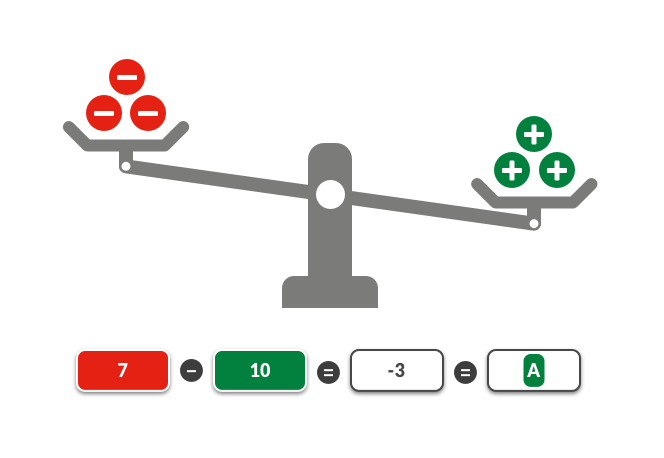 La suma de los puntos positivos y negativos da lugar a la letra y el color del alimento